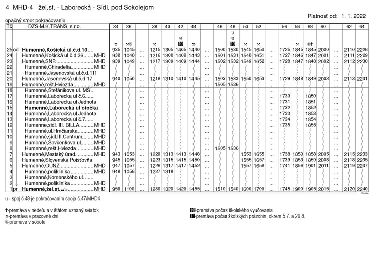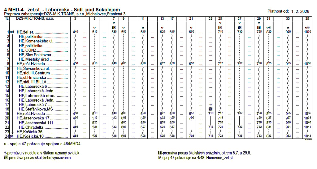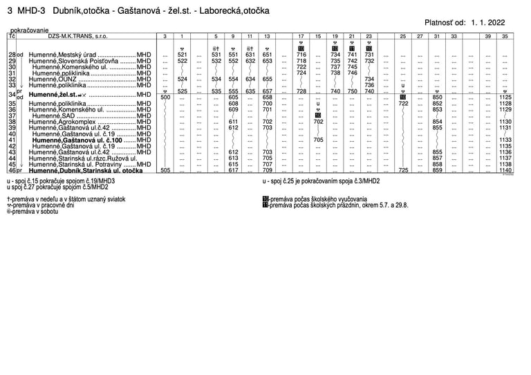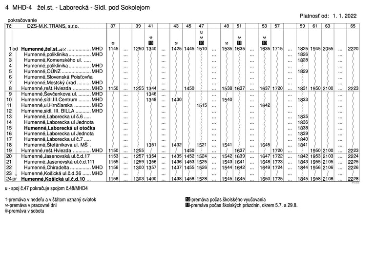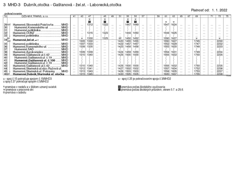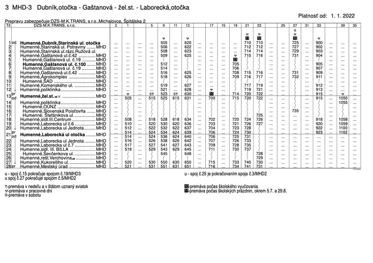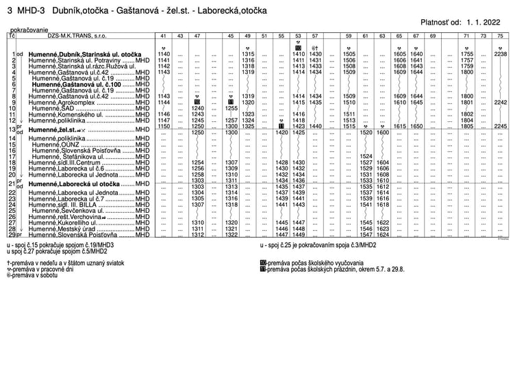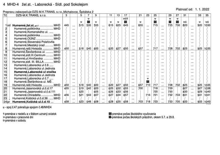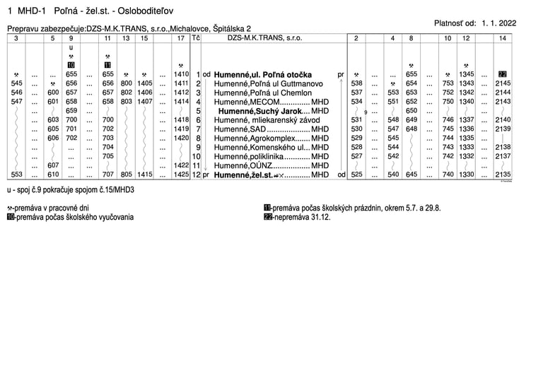pravidelnej autobusovej prepravy na linkách MHD Humenné