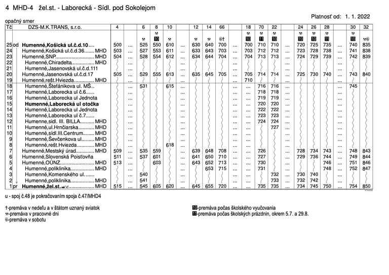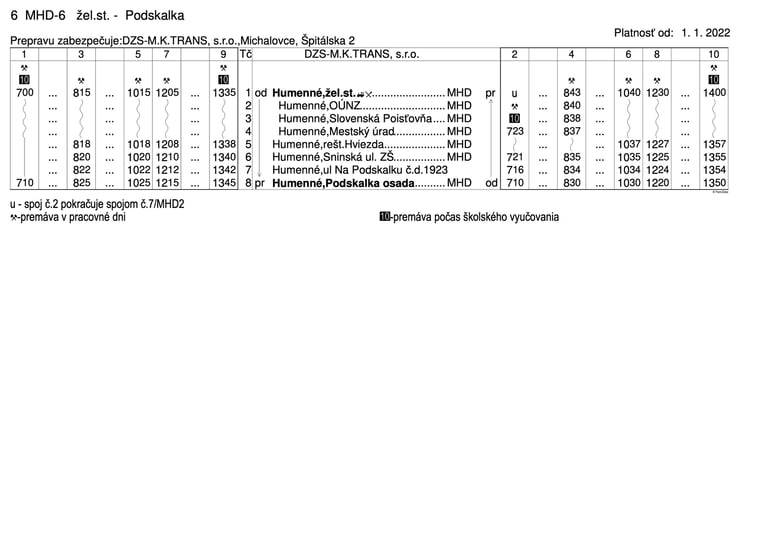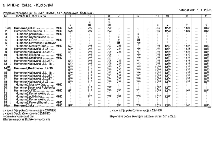 v dopravnej kancelárii MHD Družstevná 22, Humenné
